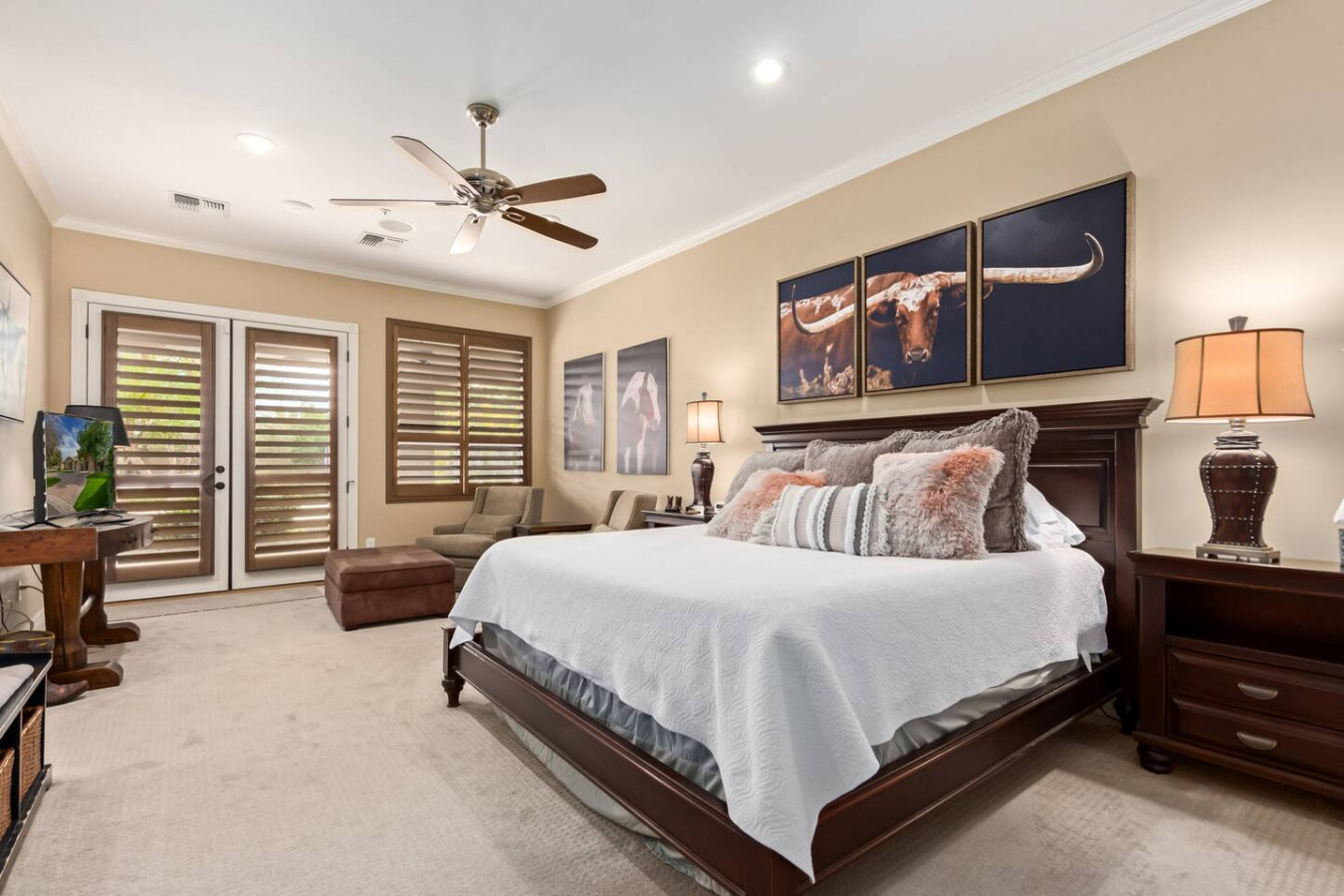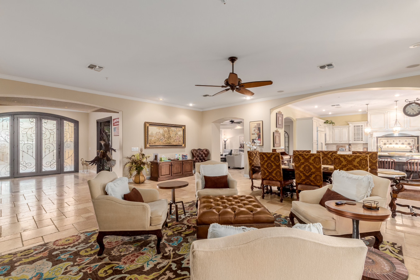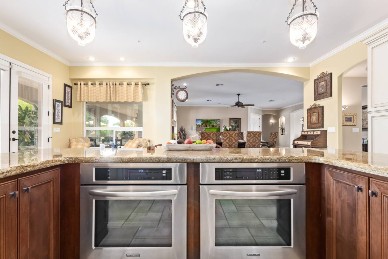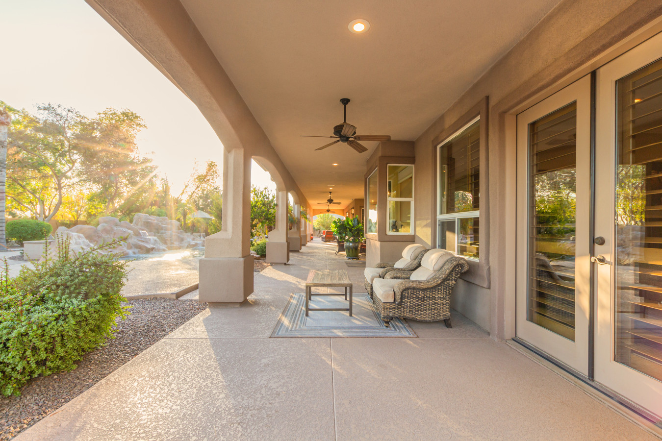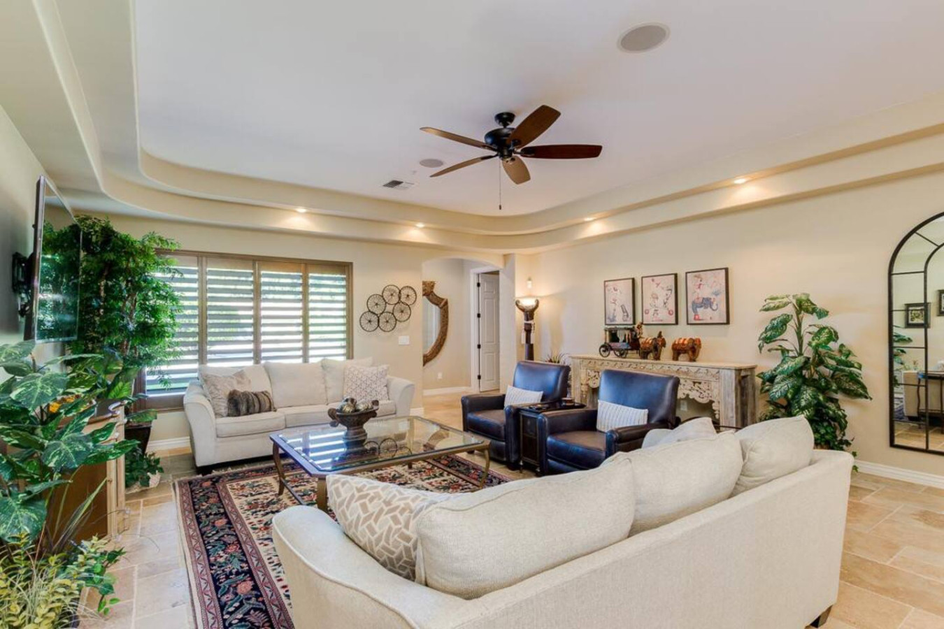 Bring the whole family for lots of fun. Heated diving pool and a non heated play pool with waterfalls and lazy river for the littles. Weddings/events available for an additional fee. Located on one grassy acre in town. 5 spacious bedrooms, 3 king beds, 2 queens W temperpedic mattress and TV in every room. House is 5,000sf, Savant music is piped throughout the property, 3 trane units for your total comfort. R/O water, 2 ovens & refrigerators, laundry room and garage. Plus More!
