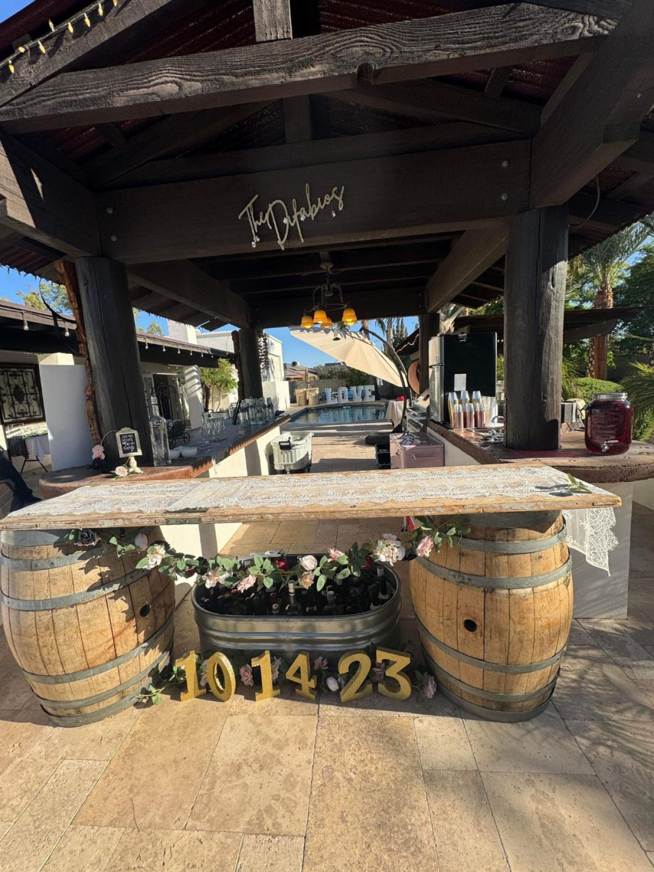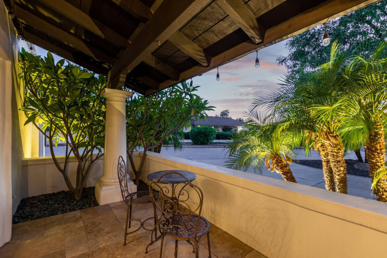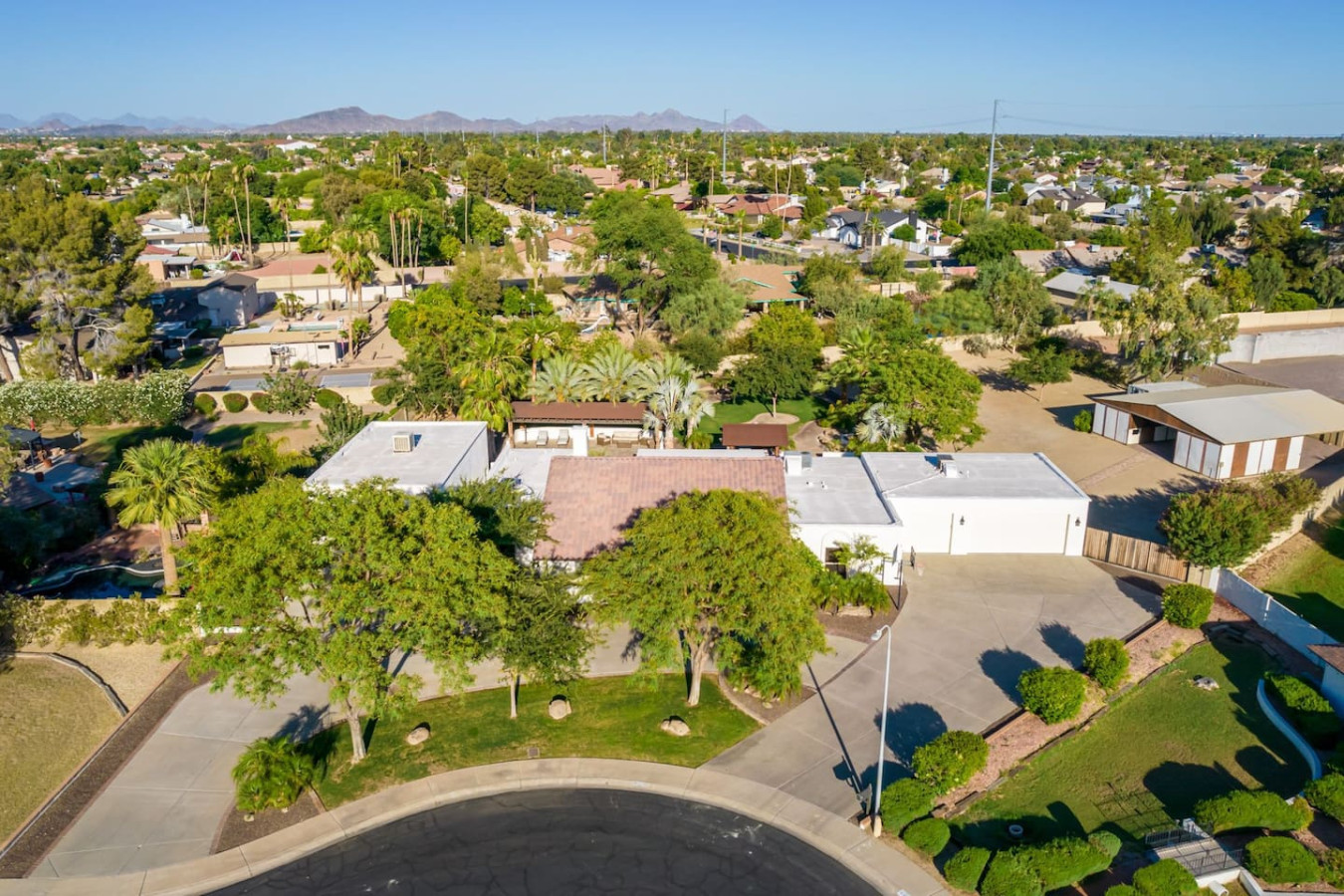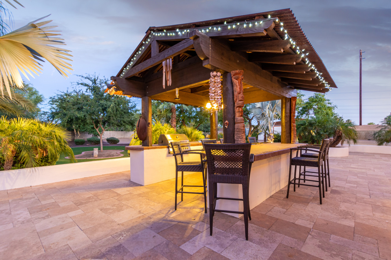 Game room features foosball, ping pong, pacman arcade game table and corn hole. Pool can be heated and covered to keep warm Nestled in a neighborhood of one acre properties just 4 miles from Peoria Sports Complex that hosts Spring Training for Seattle Mariners and San Diego Padres. 99 Palms offers a tranquil setting for your sunny Arizona vacation stay. Events may be approved with special consideration. City of Glendale noise ordinance requires quiet hours be observed 9pm to 7am. There are 5 bedrooms, 2 king beds, 4 queen beds. The house has a den with a 65 inch Smart TV loaded with streaming choices like Netflix, apple + and Disney +. There are 5 Sonos music speakers you can move around the property and listen to sonos radio, Pandora music or stream from your own phone once you connect to 99 Palms WiFi. Each bedroom has a smart TV, there is a 50 inch portable TV for outdoor use located in the game room. This TV can be moved around the property to enjoy while swimming, playing games, using the BBQ or hosting a meal in the barn. There are pool toys located in the storage bin by the pool and in the hall cabinet leading to the garage. The baja shelf is very large and can house 2 umbrellas to shade swimmers from the sun. Umbrellas are located behind the sofa under the Ramada. The ramada is a great place to hang out and there are 2 outdoor dining tables with seating for 10 plus 4 bar stools under the 2nd ramada. This is a great place for entertaining. Room for dancing on the pavers or in the barn. Quiet hours are 9pm to 7 am so all activities need to move indoors at that time. The game room is temperature controlled. There are 3 HVAC systems that run this home. Guests access the entire house with game room and the patio with 2 ramadas is accessible to guests. There is a barn and a large parking area in the gravel area behind the barn for extra vehicles. There is room to park 5 cars in the front driveway and truck and trailers can park in the back. The only areas not accessible to guests is the RV garage which stores host's personal items. I am always available via text or phone. I have a great support team that ensures your comfort should issues arise. If you prefer me to meet you upon check in, this can be easily arranged. Long horn ranch is a quiet neighborhood of one acres lots. There is lots of parking, in the front, in the garage or behind the RV gate. I request to know beforehand if you would prefer to use garage for parking vehicles or as a game room so I may set a/c accordingly. Pool is heated. There is an extra charge in winter months. There are security cameras on property exterior only.