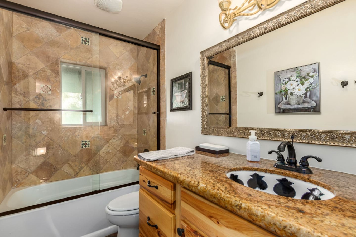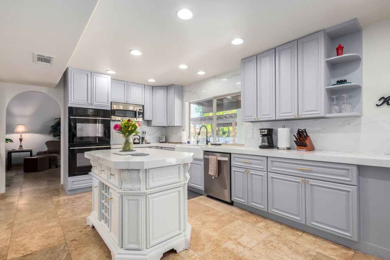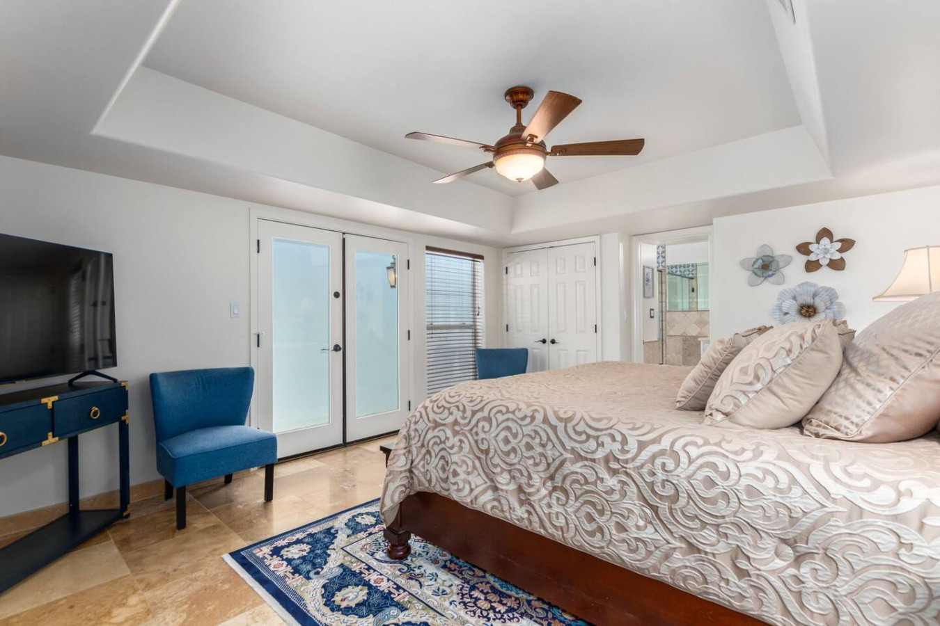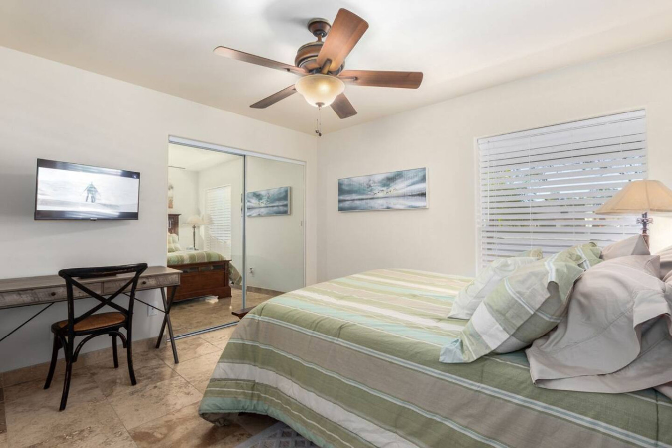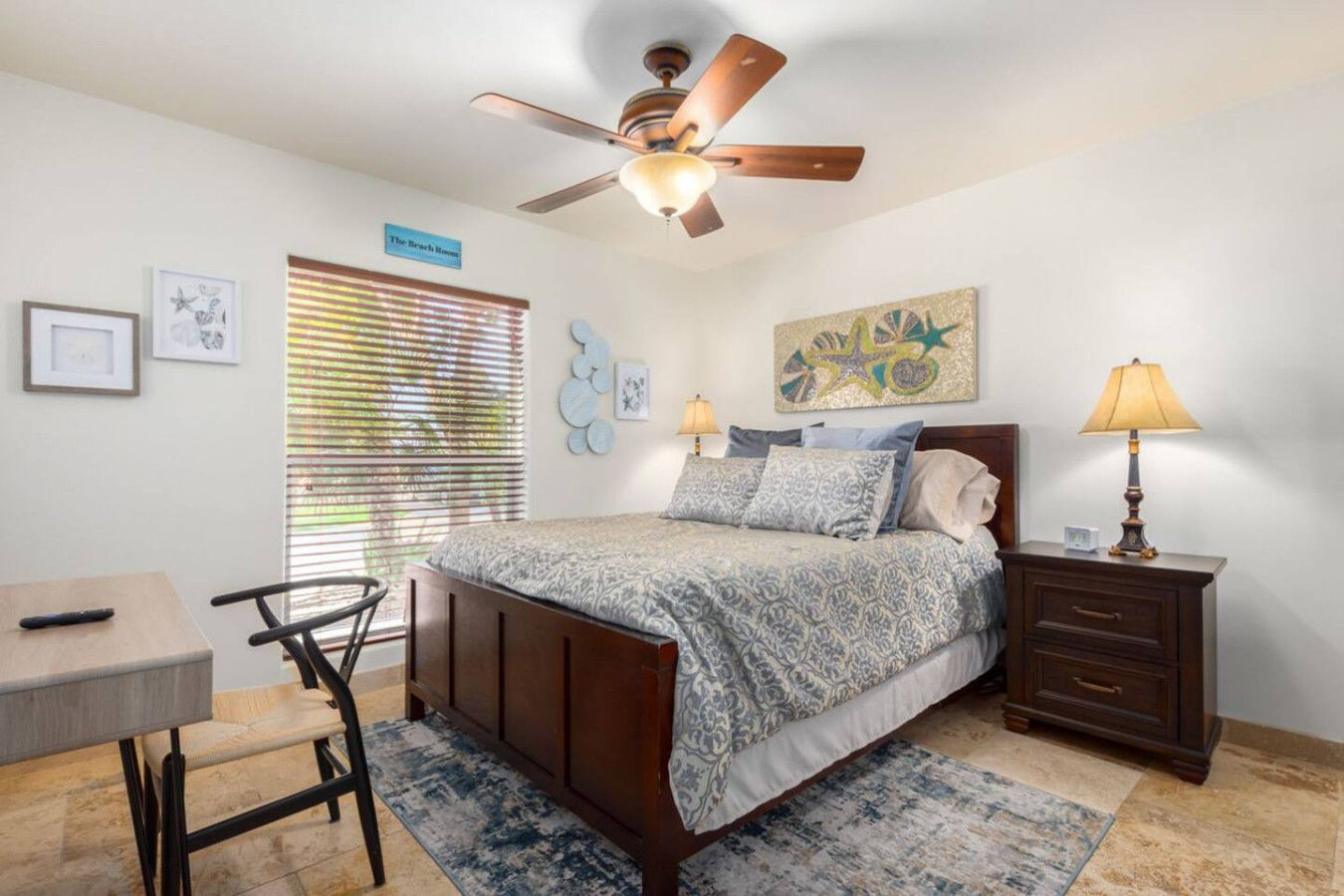 Game room features foosball, ping pong, pacman arcade game table and corn hole. Pool can be heated and covered to keep warm Nestled in a neighborhood of one acre properties just 4 miles from Peoria Sports Complex that hosts Spring Training for Seattle Mariners and San Diego Padres. 99 Palms offers a tranquil setting for your sunny Arizona vacation stay. Events may be approved with special consideration. City of Glendale noise ordinance requires quiet hours be observed 9pm to 7am. There are 5 bedrooms, 2 king beds, 4 queen beds. The house has a den with a 65 inch Smart TV loaded with streaming choices like Netflix, apple + and Disney +. There are 5 Sonos music speakers you can move around the property and listen to sonos radio, Pandora music or stream from your own phone once you connect to 99 Palms WiFi. Each bedroom has a smart TV, there is a 50 inch portable TV for outdoor use located in the game room. This TV can be moved around the property to enjoy while swimming, playing games, using the BBQ or hosting a meal in the barn. There are pool toys located in the storage bin by the pool and in the hall cabinet leading to the garage. The baja shelf is very large and can house 2 umbrellas to shade swimmers from the sun. Umbrellas are located behind the sofa under the Ramada. The ramada is a great place to hang out and there are 2 outdoor dining tables with seating for 10 plus 4 bar stools under the 2nd ramada. This is a great place for entertaining. Room for dancing on the pavers or in the barn. Quiet hours are 9pm to 7 am so all activities need to move indoors at that time. The game room is temperature controlled. There are 3 HVAC systems that run this home. Guests access the entire house with game room and the patio with 2 ramadas is accessible to guests. There is a barn and a large parking area in the gravel area behind the barn for extra vehicles. There is room to park 5 cars in the front driveway and truck and trailers can park in the back. The only areas not accessible to guests is the RV garage which stores host's personal items. I am always available via text or phone. I have a great support team that ensures your comfort should issues arise. If you prefer me to meet you upon check in, this can be easily arranged. Long horn ranch is a quiet neighborhood of one acres lots. There is lots of parking, in the front, in the garage or behind the RV gate. I request to know beforehand if you would prefer to use garage for parking vehicles or as a game room so I may set a/c accordingly. Pool is heated. There is an extra charge in winter months. There are security cameras on property exterior only.